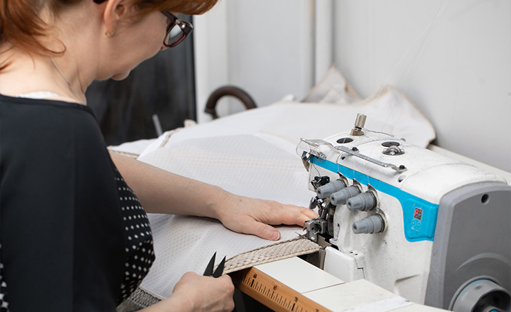 お仕事の内容は、シートカバーや足マットの裁断・縫製・仕上げ作業で、工業用ミシンをお持ちの方・経験者を特に歓迎いたします。